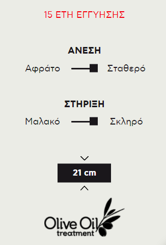 Στο χειροποίητο στρώμα AEGEAN SUNSET, η χρήση φυσικών υλικών όπως ίνες κοκοφοίνικα και το βαμβάκι με μαλλί αλλά και το ύφασμα βισκόζης με επεξεργασία από Ελαιόλαδο, προσφέρουν μία μοναδική αίσθηση άνεσης για έναν ξεκούραστο ύπνο.