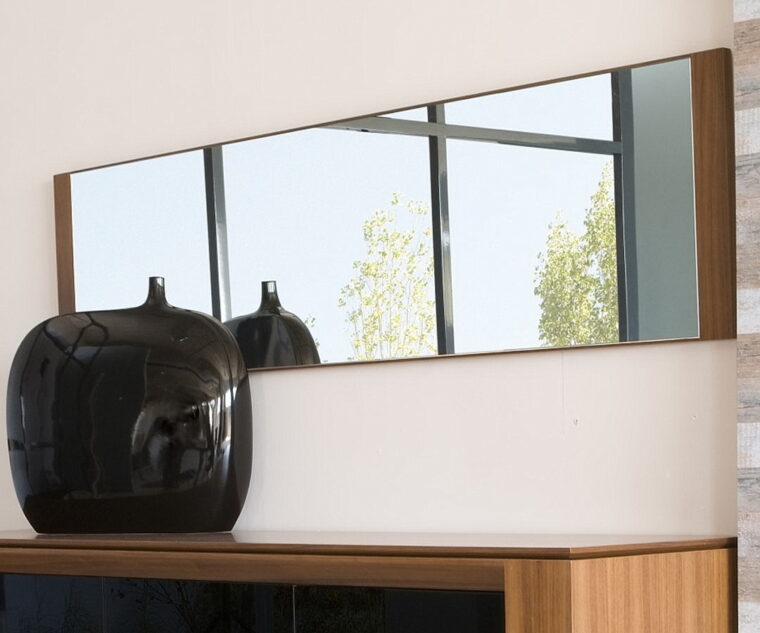 Παραλληλόγραμμος καθρέπτης σε minimal σχέδιο με λεπτομέρειες ξύλου (επιλογής σας) στο περίγραμμα. Ταιριάζει με όλα τα έπιπλα και μεγαλώνει το χώρο που τοποθετείται.