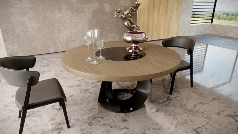 Elegant ροτόντα με μεταμοντέρνο design και contemporary, minimal στοιχεία που μεταμορφώνει το χώρο με τη δυναμική της. Art βάση από μέταλλο και κυκλικά σχήματα που εφάπτονται με απόλυτη ισορροπία και σχεδιαστική αρτιότητα. Επιλογή ανάμεσα σε κεραμικό καπάκι, σε καπάκι από ξύλο ευκαλύπτου, δρυ ή υλικού της επιλογής σας. Συνδυάζεται με την καρέκλα Chic αλλά και με πολλές καρέκλες από την συλλογή μας. Η ροτόντα Chic κατασκευάζεται σε διαστάσεις της επιλογής σας, με επιλογή υλικού στο καπάκι και επιλογή χρώματος στη βάση.