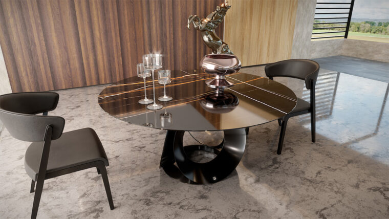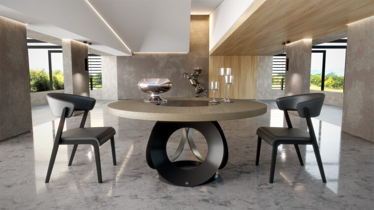 Elegant ροτόντα με μεταμοντέρνο design και contemporary, minimal στοιχεία που μεταμορφώνει το χώρο με τη δυναμική της. Art βάση από μέταλλο και κυκλικά σχήματα που εφάπτονται με απόλυτη ισορροπία και σχεδιαστική αρτιότητα. Επιλογή ανάμεσα σε κεραμικό καπάκι, σε καπάκι από ξύλο ευκαλύπτου, δρυ ή υλικού της επιλογής σας. Συνδυάζεται με την καρέκλα Chic αλλά και με πολλές καρέκλες από την συλλογή μας. Η ροτόντα Chic κατασκευάζεται σε διαστάσεις της επιλογής σας, με επιλογή υλικού στο καπάκι και επιλογή χρώματος στη βάση.