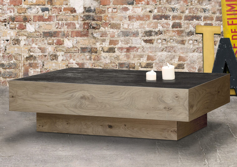 Τραπεζάκι σαλονιού με επιφάνεια κεραμικού ματ και δύο συρτάρια.