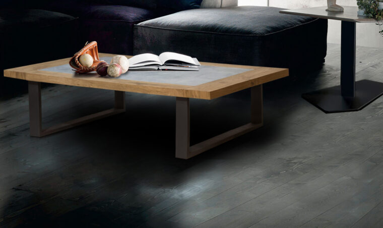 Τραπεζάκι σαλονιού με επιφάνεια κεραμικού ματ σε συνδυασμό με ρουστίκ.