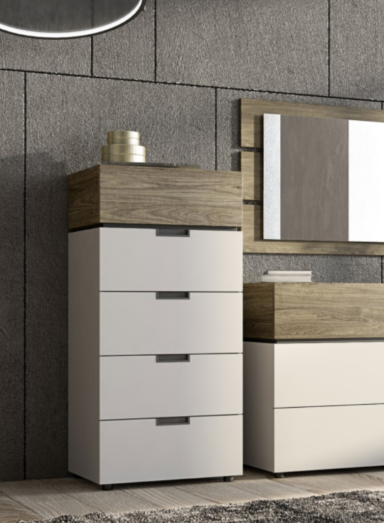 Διαθέτει πέντε συρτάρια αποθήκευσης, το εσωτερικό των οποίων κατασκευάζεται από ανάγλυφη μελαμίνη σε χρώμα linen beige. Τα συρτάρια διαθέτουν ιταλικούς μηχανισμούς ρόδας Teflon, με μεγάλη αντοχή στο βάρος και την χρόνια χρήση, ενώ πολύ εύκολα μπορούν να τοποθετηθούν μηχανισμοί soft close για αθόρυβη λειτουργία.