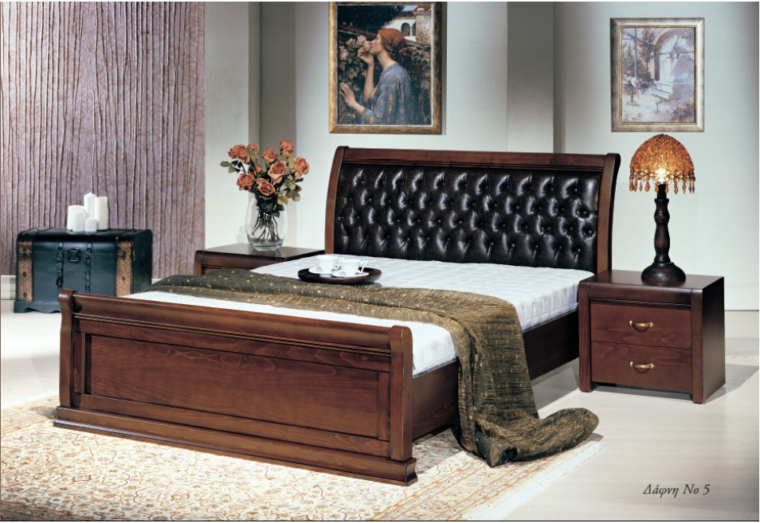 Κλασική χειροποίητη κρεβατοκάμαρα. Αποτελείται από κρεβάτι, δύο κομοδίνα, τουαλέτα και καθρέπτη.