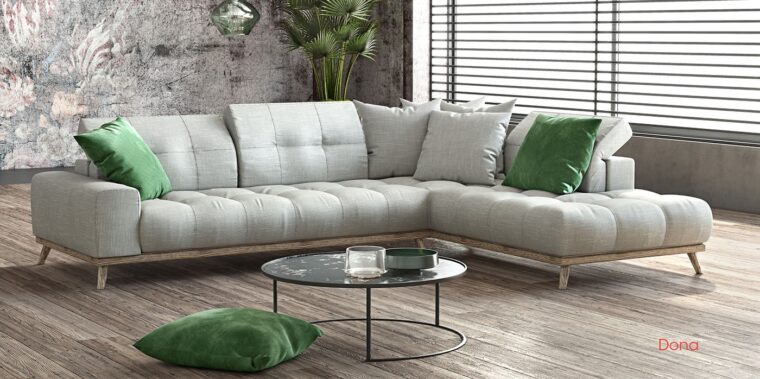 Γωνιακός καναπές που παντρεύει την κλασσική με την σκανδιναβική αισθητική. Οι ξύλινες λεπτομέρειες προσφέρουν μια φυσική “ζεστασιά”.