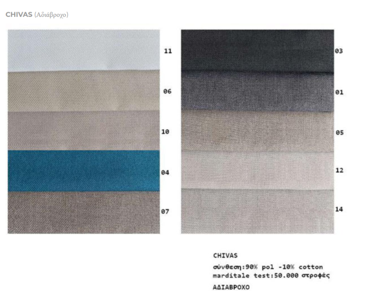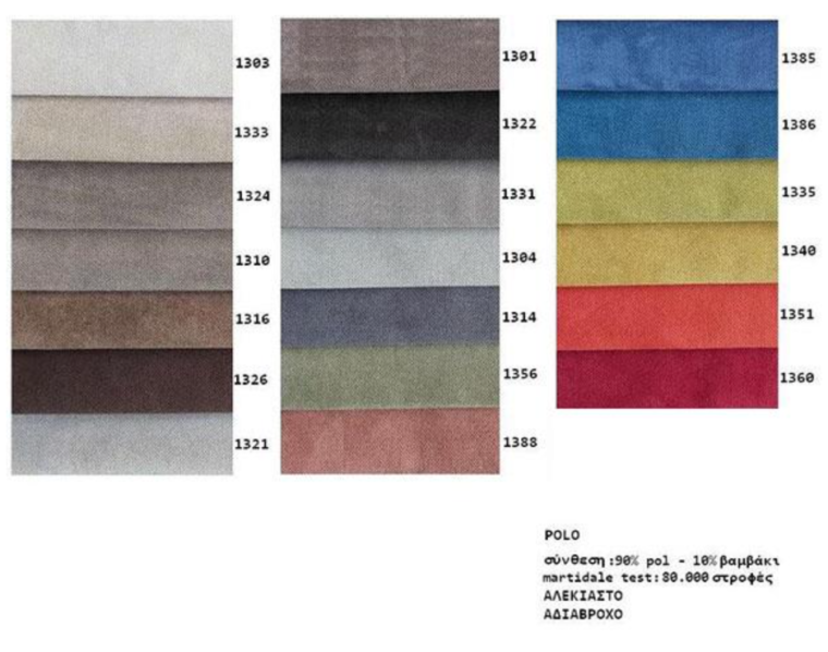 Οι τιμές συμπεριλαμβάνουν επιλογή υφασμάτων από τις παρακάτω παλέτες.