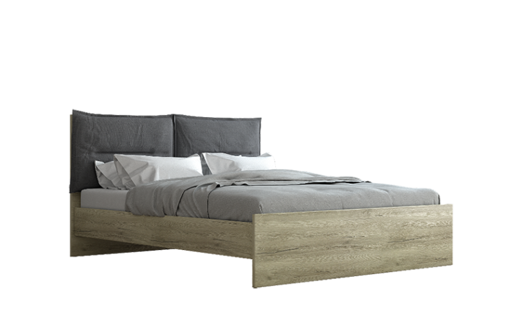 Μοντέρνο σετ κρεβατοκάμαρας σε τεχνοτροπία ξύλου με αποσπώμενες μαξιλάρες στο κεφαλάρι σε γκρι απόχρωση. Διαθέσιμο μόνο σε συγκεκριμένη απόχρωση και διαστάσεις.