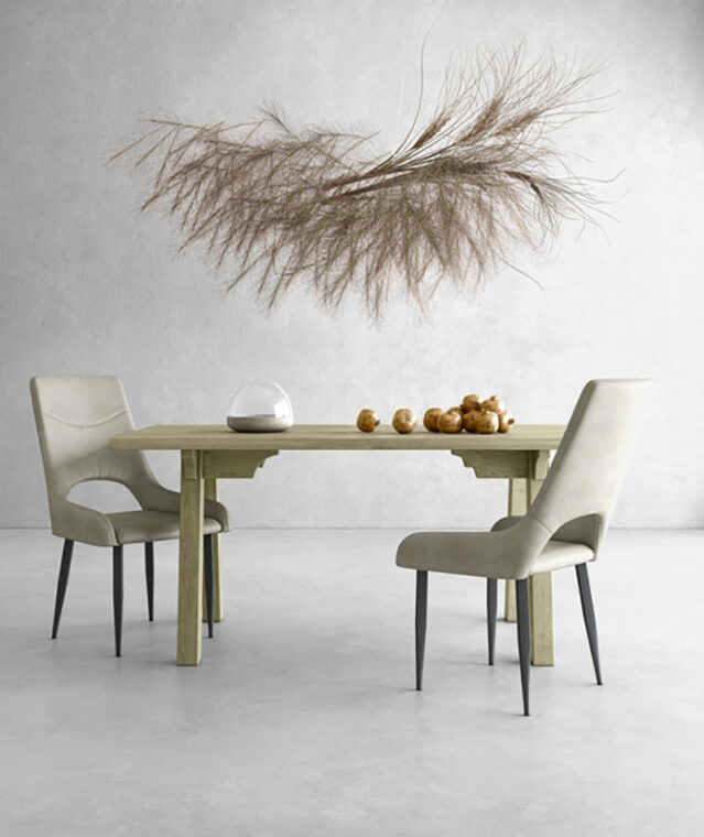 Τραπεζαρία με τεχνοτροπία ξύλου σε φυσική απόχρωση με ξύλινα μασίφ πόδια. Διαθέσιμη σε σταθερή διάσταση και χρώμα.