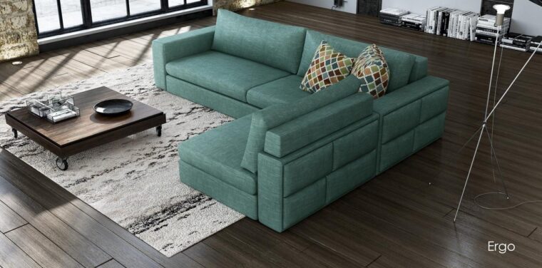 Καναπές εργονομικού σχεδιασμού, σε γωνιακή διαμόρφωση, ικανός να ταιριάζει με οποιαδήποτε διακόσμηση στο χώρο.