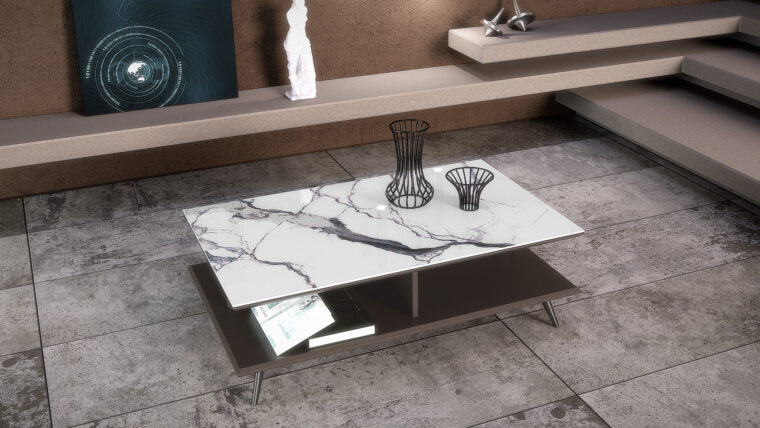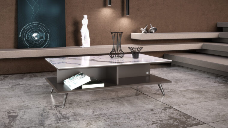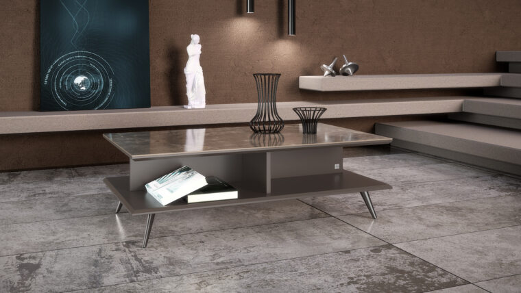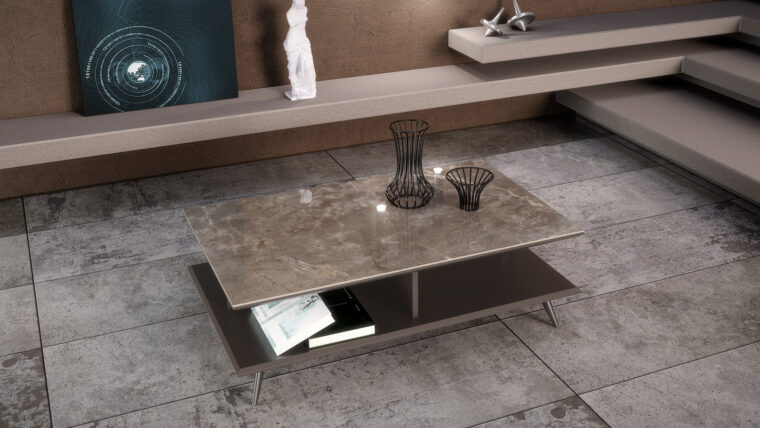 Post modern σχέδιο με κλασσικές πινελιές. Ιδιαίτερο τραπέζι σαλονιού με κεραμική επιφάνεια στο καπάκι, αποθηκευτικό χώρο με επιβλητικές συμμετρίες και μεταλλικά elegant πόδια. Συνδυάζεται με πολλές συνθέσεις τοίχου από τη συλλογή μας.