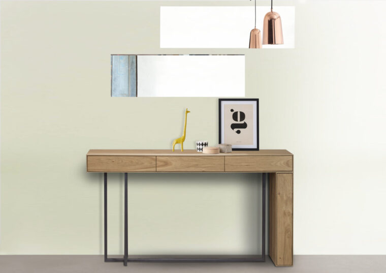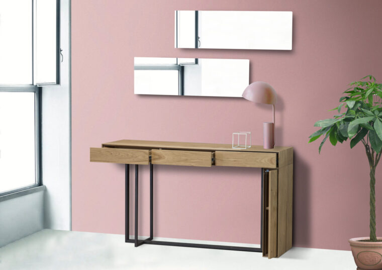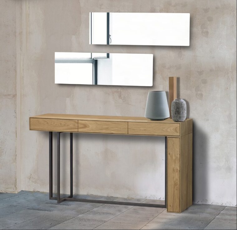 Κονσόλα σε δρυς ρουστίκ με μεταλλική βάση.