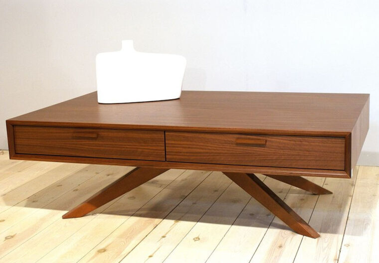 Τραπέζι μέσης με ρετρό καταβολές. Λειτουργικό, φινετσάτο, με δυο συρτάρια και ξύλινα κομψά πόμολα. Μπορεί να συνδυαστεί με πολλές συνθέσεις τοίχου από τη συλλογή μας. Το τραπεζάκι Maxx κατασκευάζεται σε διαστάσεις, ξύλο και χρώματα επιλογής του πελάτη.