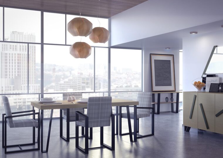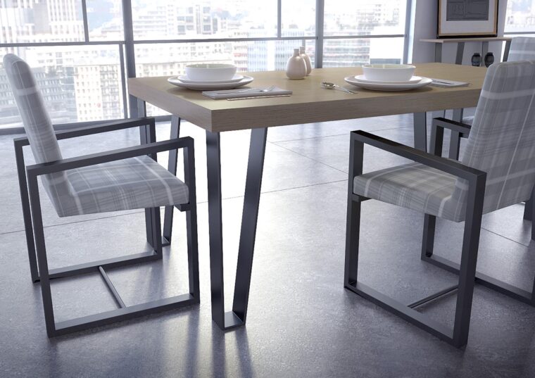 Τραπέζι τραπεζαρίας με επιφάνεια σε δρυς . Μεταλλικά πόδια σε ανθρακί χρώμα. Μπορεί να είναι σταθερό ή με επεκτάσεις (+45 εκ). Μπουφές σε δρυς με τέσσερις πόρτες και τέσσερα πόμολα ακανόνιστα τοποθετημένα. Κάθισμα Νο 63 σε ύφασμα και βάση από μασίφ οξιά. Όλη η σειρά ΜΙΑΜΙ είναι διαθέσιμη σε πολλές χρωματικές επιλογές.