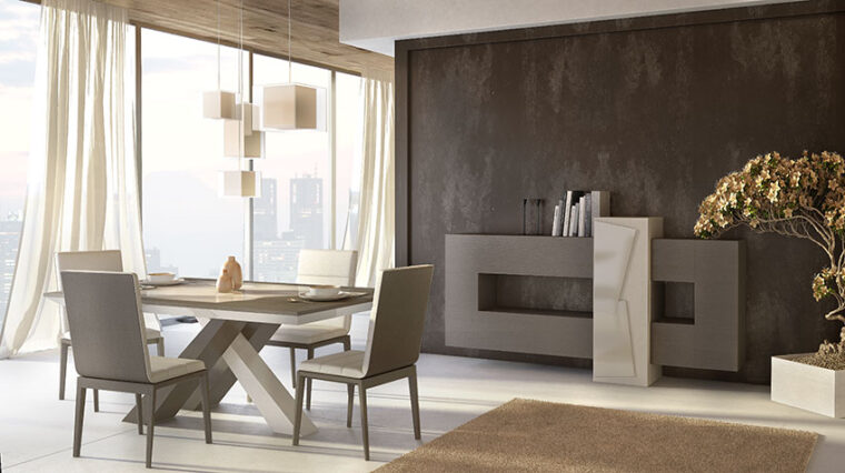 Η τραπεζαρία Milano συνδυάζει τον μοντέρνο σχεδιασμό των λιτών γραμμών, με τις ιδιαίτερες υφές των υλικών. Τα χιαστί πόδια στη βάση και το ξεχωριστό καπάκι με το λακαριστό τζάμι σε σχήμα κύματος, την διακρίνουν ανάμεσα σε πολλές!