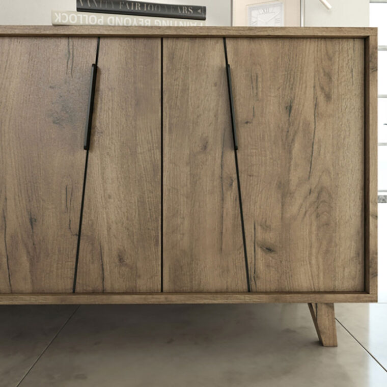 Ρετρό μπουφές με τεχνοτροπία ξύλου σε καρυδί απόχρωση .Διαθέτει 4 ντουλάπια με μεγάλο αποθηκευτικό χώρο. Τα πόδια είναι από μασίφ ξύλο βαμμένο στην ίδια απόχρωση. Διαθέσιμο και σε άλλες αποχρώσεις