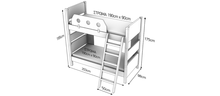Η διάσταση του στρώματος που επιδέχεται η κουκέτα είναι 90*190.