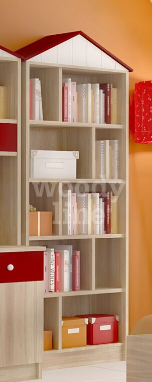 Παιδική βιβλιοθήκη με διακοσμητική σκεπή όπου μπορείτε να κάνετε το δικό σας συνδυασμό χρωμάτων με πολλούς αποθηκευτικούς χώρους για βιβλία και κουτιά αποθήκευσης.
