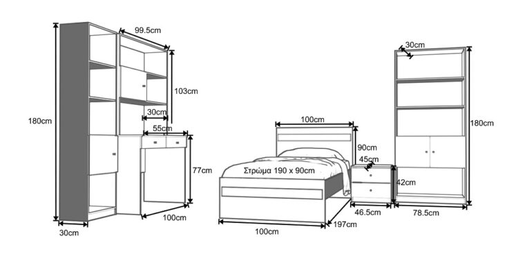Παιδικό δωμάτιο ΑΝΔΡΟΣ 1 Ξύλο Μελαμίνη Δρυς – Λάκα Νο. 24