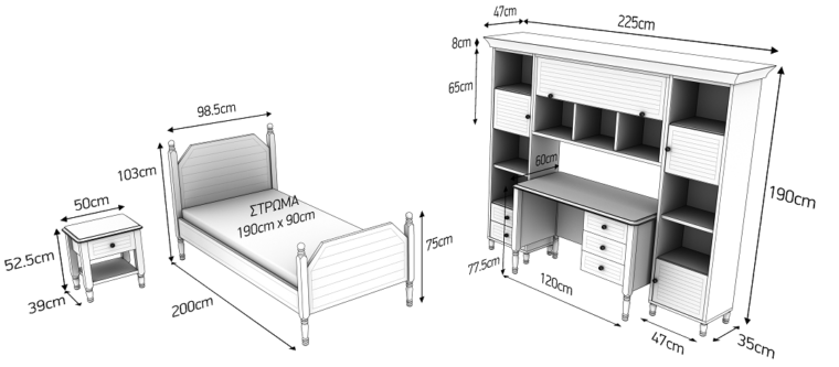 Η διάσταση του στρώματος που επιδέχεται το κρεβάτι είναι 90*190.