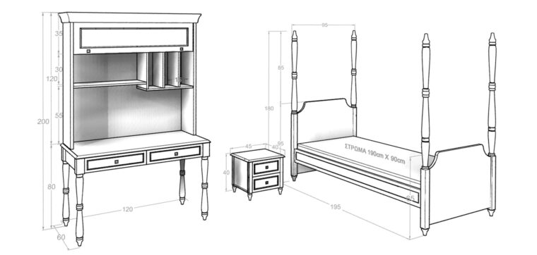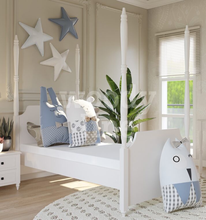 Παιδικό κρεβάτι σε κλασικό στυλ, ιδανικό για κάθε ηλικία και γούστο, με κολώνες από μασίφ οξιά.
