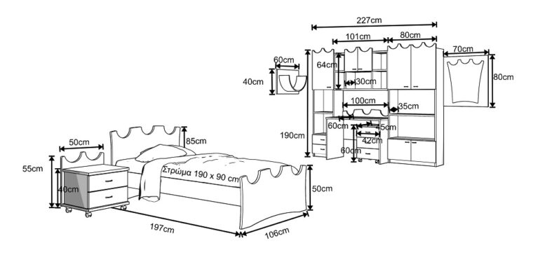 Παιδικό δωμάτιο ΚΟΥΦΟΝΗΣΙΑ 2 Ξύλο Ανεγκρέ Ντεκαπέ – Λάκα Νο. 14