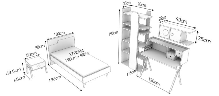 Παιδικό δωμάτιο ΚΥΘΗΡΑ 1 Ξύλο Μελαμίνη Δρυς – Λάκα Νο. 28 & Νο. 31
