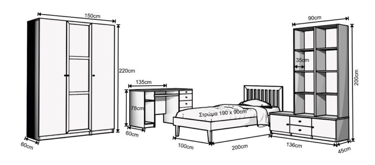 Παιδικό δωμάτιο ΣΑΝΤΟΡΙΝΗ 1 Ξύλο Ανεγκρέ Ντεκαπέ – Λάκα Νο. 14 & Νο. 16