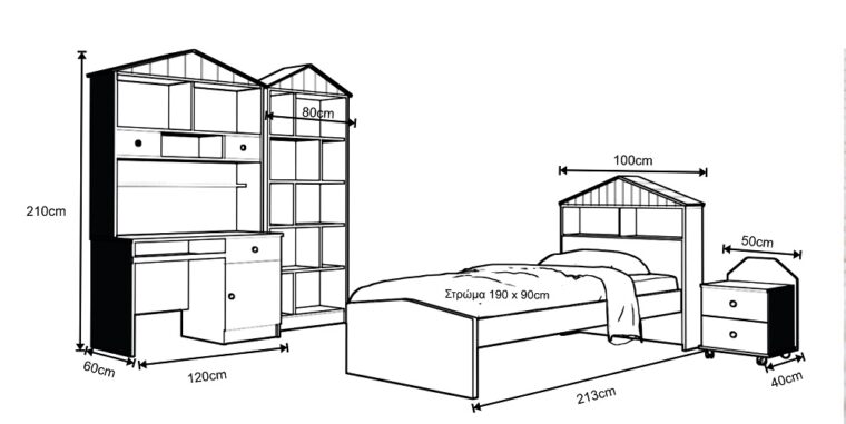 Παιδικό δωμάτιο ΣΕΡΙΦΟΣ 2 Ξύλο Μελαμίνη Ντεκαπέ – Λάκα Νο. 23