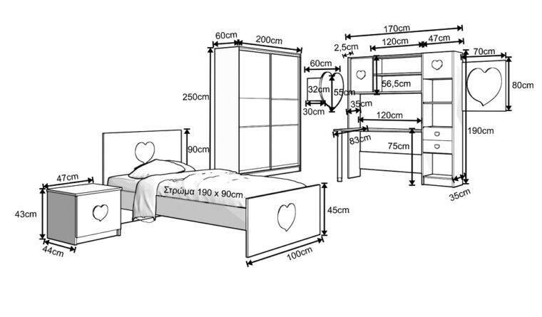 Παιδικό δωμάτιο ΣΥΡΟΣ 1 Ξύλο Μελαμίνη Ντεκαπέ – Λάκα Νο. 14