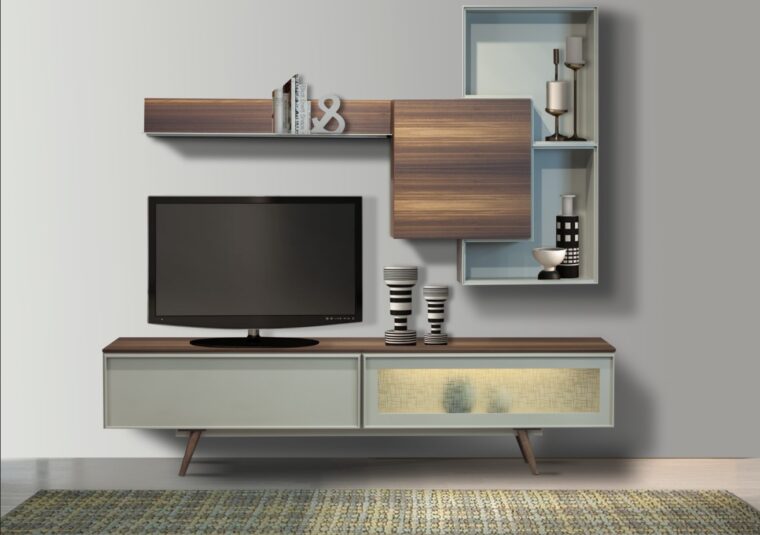 Σύνθεση σε ευκάλυπτο, λάκα, τζάμι με τεχνοτροπία και κρυφό φωτισμό.