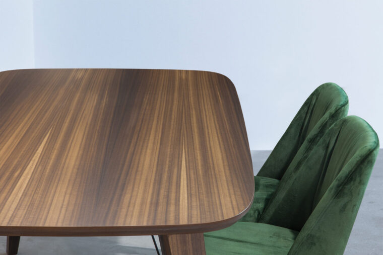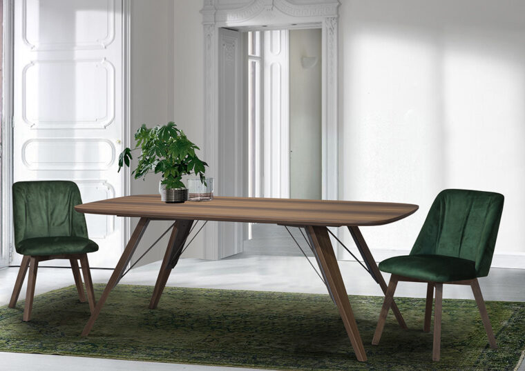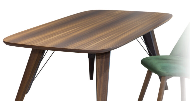 Τραπέζι σε ευκάλυπτο με μεταλλικό σκελετό και οβάλ σχήμα.