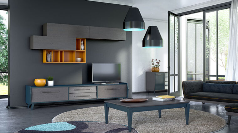 Δρύινη κατασκευή, με πλούσιο αποθηκευτικό χώρο, σε γκρι και μπλε απόχρωση, διαθέσιμη σε διάσταση και χρωματισμούς της επιλογής σας!