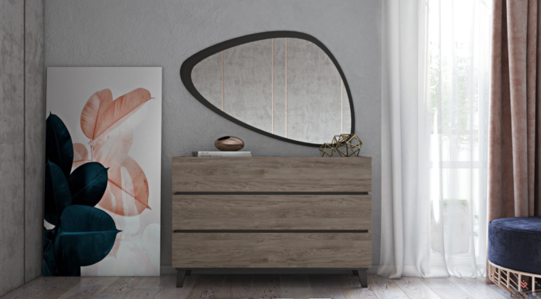 Η ξύλινη graphite grey βάση η οποία στηρίζει την συρταριέρα, κάνει την καθαριότητα ακόμη πιο εύκολη διαδικασία, αφήνοντας ιδιαίτερο χώρο για την σκούπα κάτω από το έπιπλο.