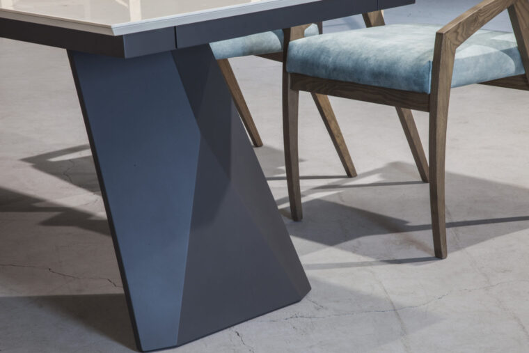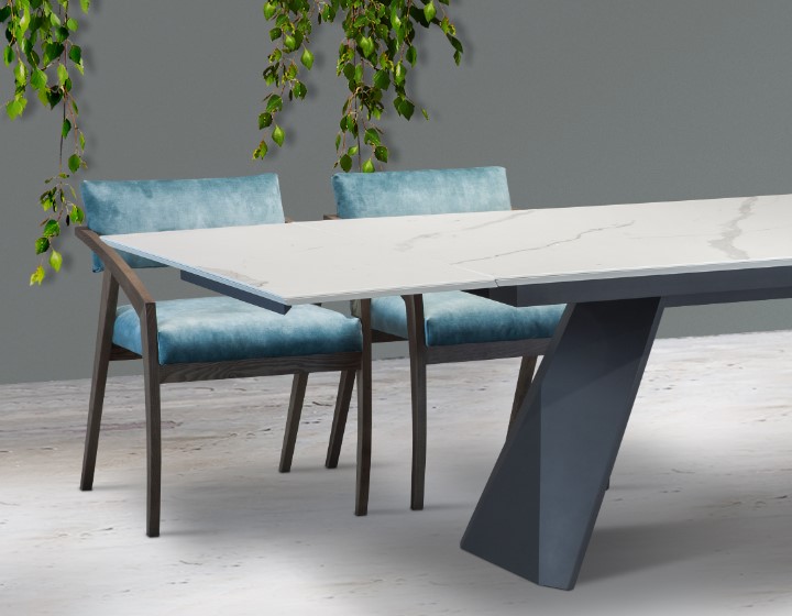 Τραπέζι με κεραμική επιφάνεια ματ και κεραμική προέκταση.