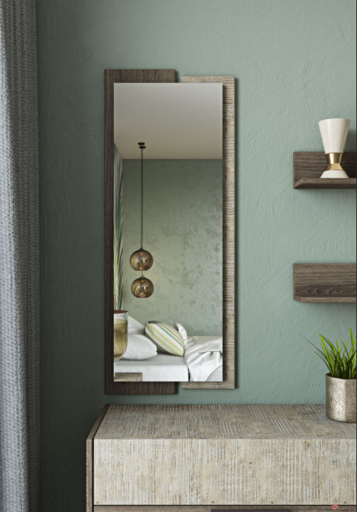Ο καθρέπτης Sicilia συνδυάζει άψογα τα δύο βασικά υλικά της Collection, τον τεχνητό καπλαμά χρώματος lava grey oak (m.23) και της διακοσμητικής ανάγλυφης επιφάνειας. Είναι ιδανικός για να ολοκληρώσει το στυλ του υπνοδωματίου σας και οποιουδήποτε χώρο επιλέξετε να τον τοποθετήσετε.