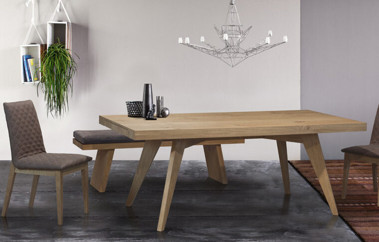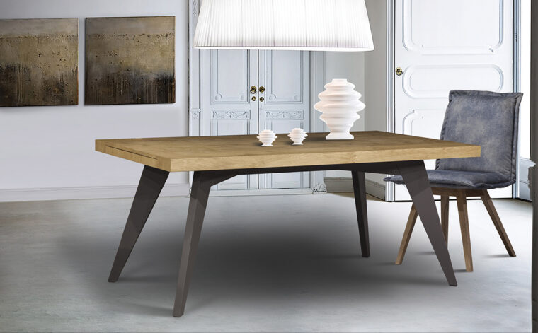 Τραπέζι με επιφάνεια δρυς ρουστίκ και προέκταση.