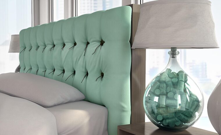 Κρεβάτι με σκελετό σε δρυς και κεφαλάρι επενδυμένο σε ύφασμα με λεπτομέρεια κορδόνι ακανόνιστα κομμένο. Η τουαλέτα και τα κομοδίνα είναι σε δρυς ενώ τα συρτάρια είναι σε λάκα ματ. Είναι διαθέσιμο σε αρκετές χρωματικές επιλογές.