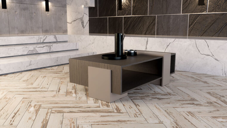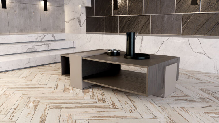 Δρυς και λάκα σε ένα τραπέζι μέσης με σχήματα που μπλέκονται αρμονικά μεταξύ τους. Ένα φινετσάτο τραπέζι που δένει με κάθε στυλ διακόσμησης και προσδίδει λειτουργικότητα και ευχρηστία στο χώρο. Συνδυάζεται με τη σύνθεση τοίχου TV Zoom αλλά και με πολλές συνθέσεις τοίχου από τη συλλογή μας. Το  Zoom το κατασκευάζουμε σε διαστάσεις, υλικά και συνδυασμούς χρωμάτων της επιλογής σας.